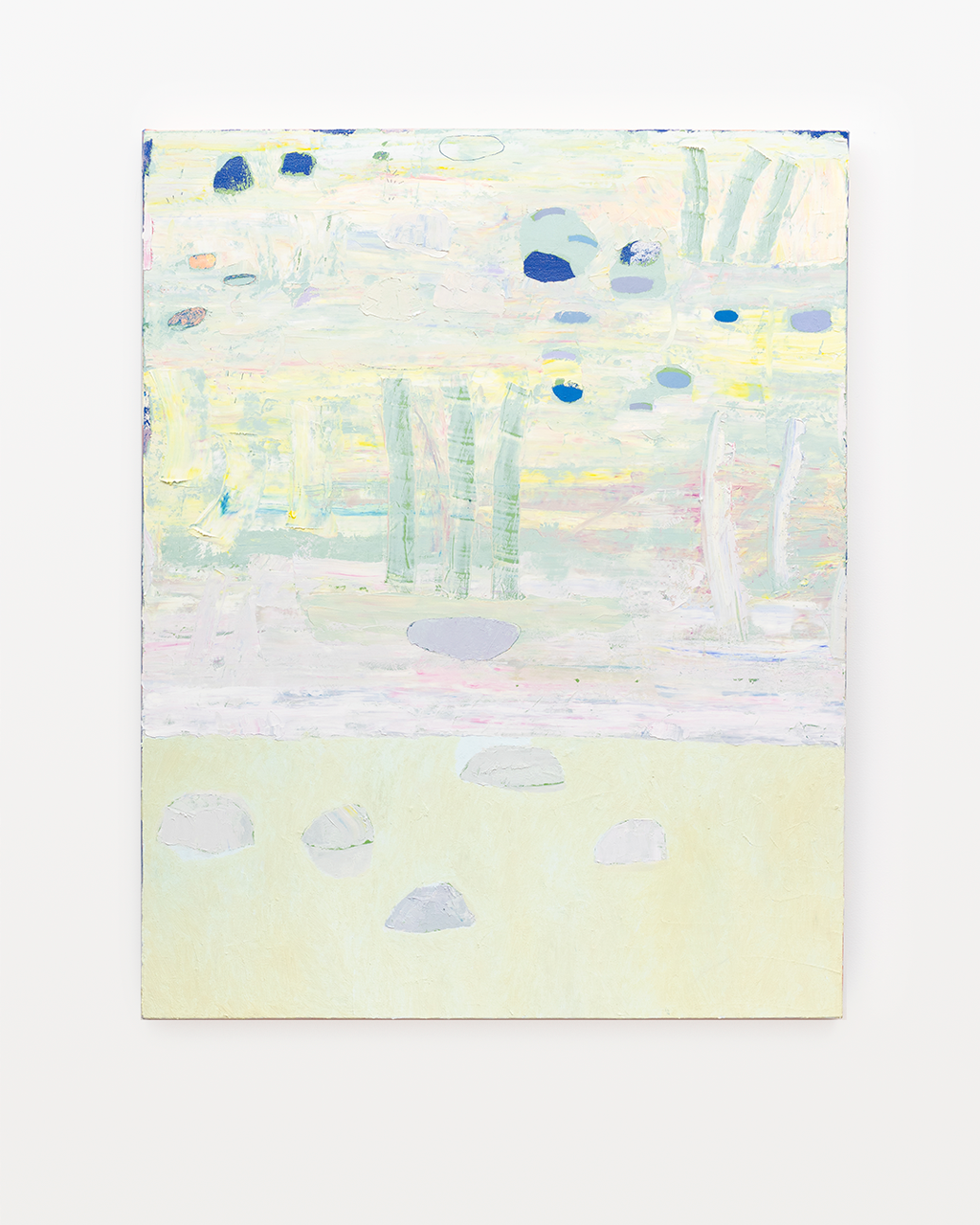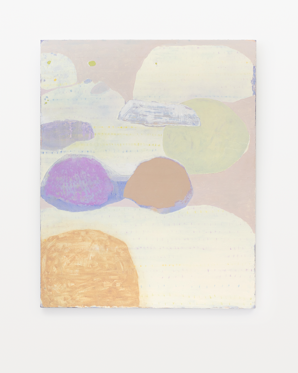 Graduada e mestre em Artes Visuais pela UFPE, sua trajetória vem se consolidando a partir de uma pesquisa que interroga a pintura em sua própria materialidade. O gesto, o erro e o pentimento tornam-se operadores críticos de uma prática que faz do processo pictórico um campo de pensamento. Sua obra é atravessada por uma atenção ao ato de pintar como matéria e construção. Entre sobreposições e camadas, Marcela tensiona o limite entre o erro e a permanência, deixando visível o rastro do fazer. A superfície, muitas vezes espessa, acolhe zonas de cor que parecem mover-se lentamente, como se o tempo do ateliê permanecesse inscrito em cada plano.